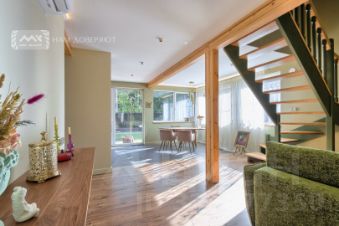 Дом поострен из качественных натуральных материалов с использованием современных технологий строительства. Стены толщиной 250 мм ,выполнено внешнее утепление + звукоизоляция. Фасад минеральная штукатурка, натуральный планкен из лиственницы и цоколь из искусственного камня.