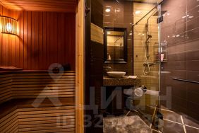 ПланировкаПервый этаж — просторная кухня-гостиная около 60 м² со вторым светом и выходом во двор. Пространство светлое, с хорошими пропорциями. Здесь же кабинет, санузел с сауной (отделка из термодревесины) и котельная.