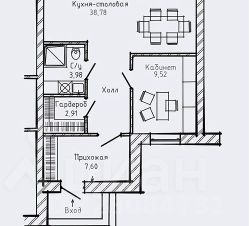 Двухэтажный таунхаус площадью 129,6 кв. м с полной чистовой отделкой. На первом этаже прихожая, гардеробная, санузел с душем, небольшая гостевая комната и кухня-гостиная с выходом во внутренний двор. На втором три комнаты и санузел с ванной.