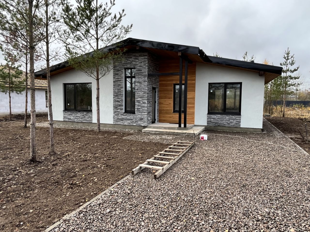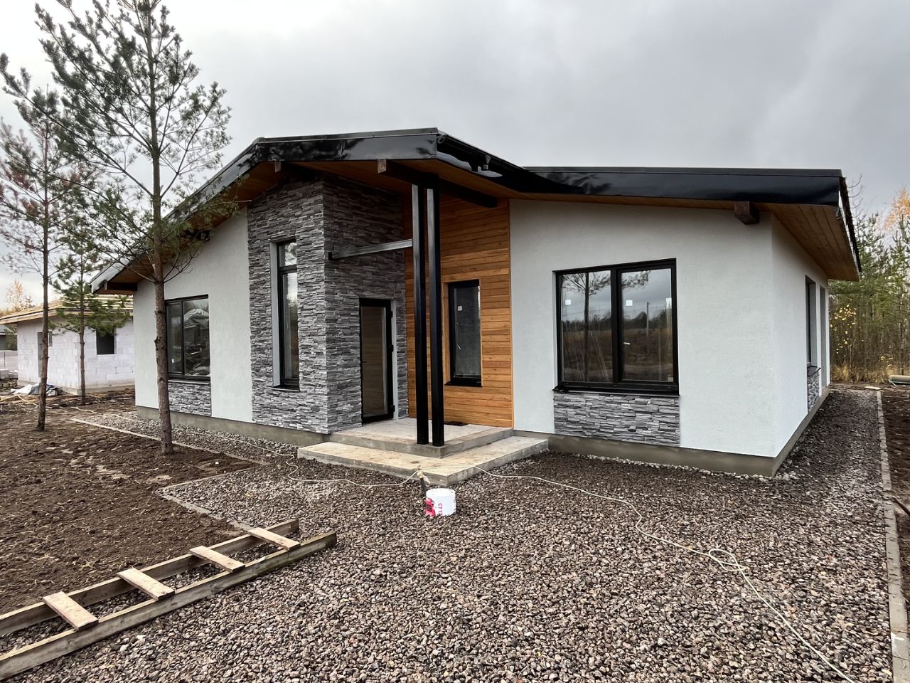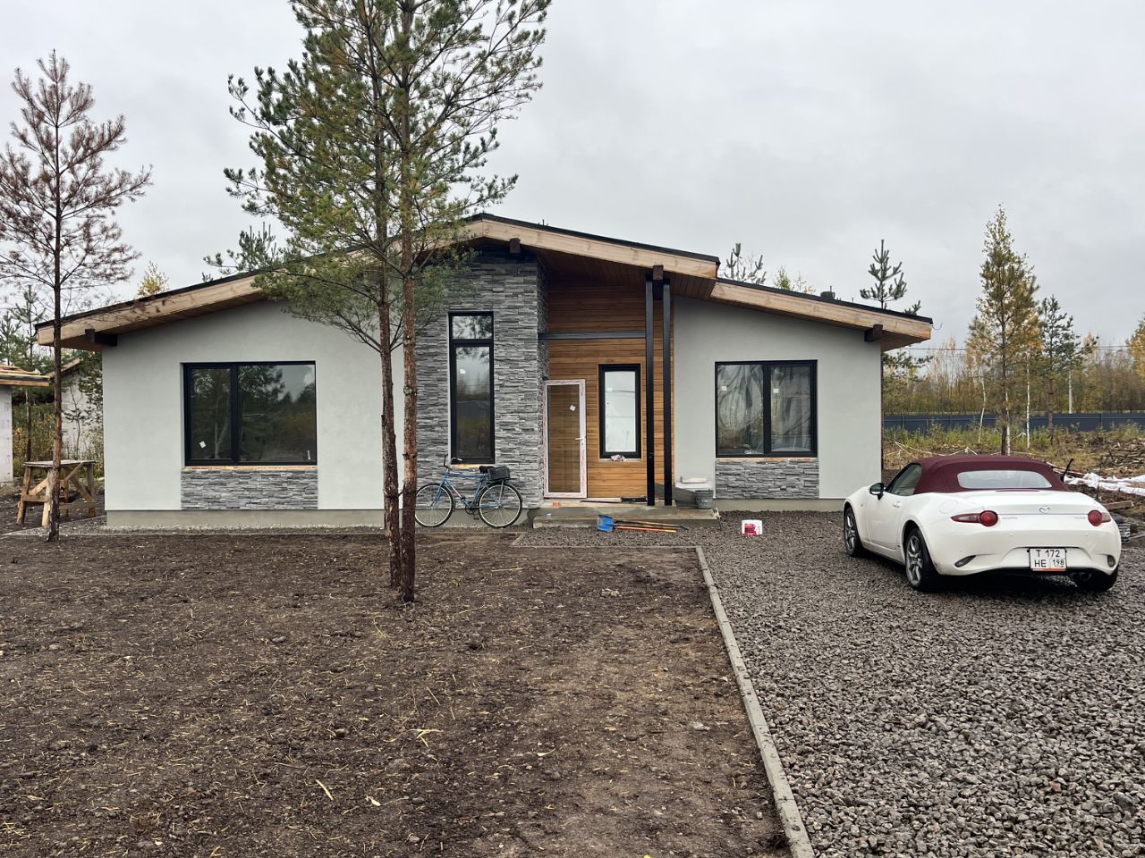 на сегодняшний день (октябрь 2025г) завершаются работы по устройству фасада и благоустройству, ведутся отделочные работы, внутри дома.