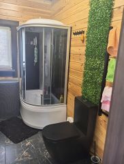 Двухэтажный теплый дом, выполненный из двойного бруса, в котором есть три полноценный отдельные комнаты, большая кухня-гостинная и совмещенные туалет с ванной с теплым полом.