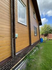 - дом возведен на фундаменте — бетонные сваи(внешне все эстетично зашито).