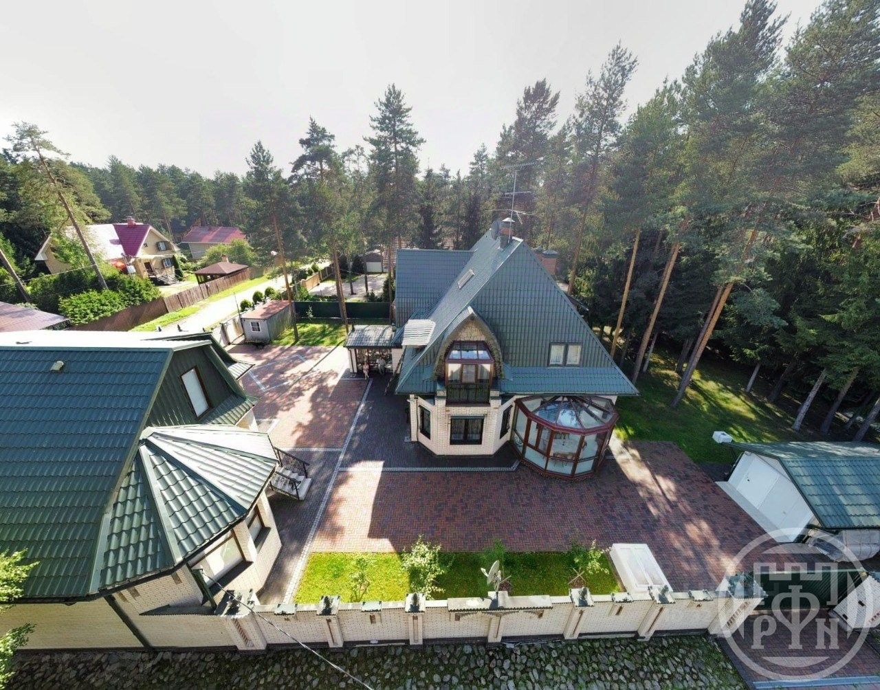 На участке 22 сотки сауна с бассейном и оборудованный хозблок для хранения инвентаря. На участке выполнен ландшафтный дизайн: газон, вековые сосны. Имеется зона с плодовыми деревьями.