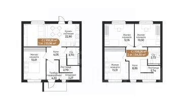 Двухэтажный таунхаус евро-планировки площадью 108.26 кв. м имеет четыре жилые комнаты (10.50, 12.16, 13.01 и 13.31 кв. м), просторную кухню-гостиную (22.90 кв. м), маленькую кладовую и два санузла. Во входной зоне предусмотрено место под небольшую гардеробную зону. Перед входом в дом есть 2 парковочных места, а на заднем дворе собственное патио площадью 146.7-366.7 кв. м, где можно организовать площадку для отдыха или барбекю. Внутренняя отделка Таунхаус сдается с полной чистовой отделкой и готовой кухней. В основе дизайн-концепции лежат идеи скандинавского минимализма. Светлые природные оттенки подойдут для воплощения большинства интерьерных идей. В отделке использован износостойкий ламинат 32 класса с древесной фактурой, белые матовые флизелиновые обои под покраску, плинтуса в цвет стен, белые матовые натяжные потолки с креплением под люстру и встроенными спотами, межкомнатные двери из МДФ с черной фурнитурой. В санузлах крупная керамическая плитка с мраморным узором на стенах и серая на полу; унитаз с инсталляцией, белая раковина со смесителем, белая акриловая ванна с экраном. Предусмотрено место для подключения стиральной машины. Кухонный гарнитур спроектирован по индивидуальным параметрам. Корпус и нижний фасад светлого оттенка дуба, а верхний фасад белого цвета. Во внутреннем оснащении есть лоток для столовых приборов и двухуровневая сушилка для посуды. Кухня укомплектована встроенной техникой: 4-конфорочная электрическая варочная поверхность, электрический духовой шкаф, вытяжка, посудомоечная машина, встроенная композитная мойка и смеситель с аэратором. Внешняя отделка Фасад выполнен из трехслойных железобетонных стеновых панелей по монолитной технологии. Поверхность наружного слоя из архитектурного бетона имитирует текстуру и цвет деревянных реек и досок, а также кирпича. Расположение и инфраструктура Жилой комплекс "СветЛО" располагается в районе с экологически чистом районе. Он окружен лесами, озерами и заповедниками. На закрытой охраняемой территории свой коммерческий кластер с пунктами выдачи, коворкингом, кафе и ресторанами, магазинами, фитнес-центром; променад длиной 1.5 км, пруд с набережной и пляжной зоной, сухой фонтан, уличные тренажеры, детские площадки, парк для выгула собак. Социальная инфраструктура включает детский сад на 140 мест и общественные прогулочные зоны японский сад и сад трав.
