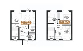 Общая площадь91,02 м²