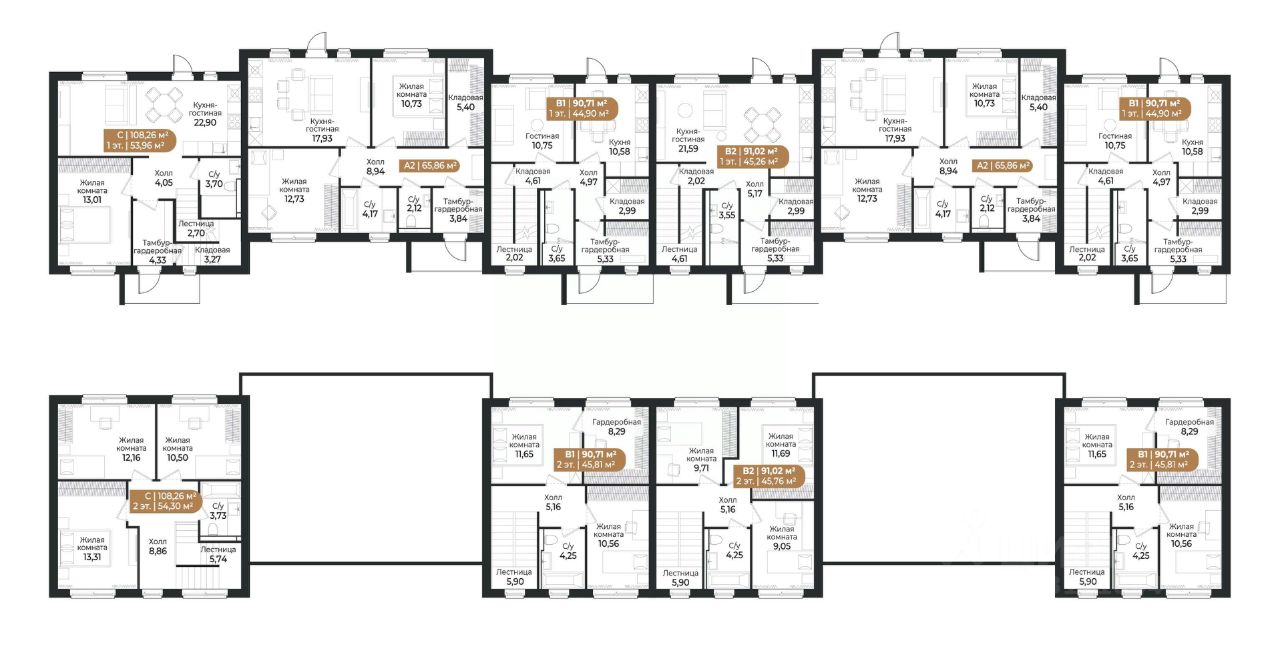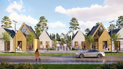 Двухэтажный таунхаус евро-планировки площадью 91.02 кв. м имеет три небольшие жилые комнаты (9.05, 9.71 и 11.69 кв. м), просторную кухню-гостиную (21.59 кв. м), две кладовые и два санузла. Во входной зоне предусмотрено место под гардеробную. Перед входом в дом есть 2 парковочных места, а на заднем дворе собственное патио площадью 75.2-309.2 кв. м, где можно организовать площадку для отдыха или барбекю. Внутренняя отделка Таунхаус сдается с полной чистовой отделкой и готовой кухней. В основе дизайн-концепции лежат идеи скандинавского минимализма. Светлые природные оттенки подойдут для воплощения большинства интерьерных идей. В отделке использован износостойкий ламинат 32 класса с древесной фактурой, белые матовые флизелиновые обои под покраску, плинтуса в цвет стен, белые матовые натяжные потолки с креплением под люстру и встроенными спотами, межкомнатные двери из МДФ с черной фурнитурой. В санузлах крупная керамическая плитка с мраморным узором на стенах и серая на полу; унитаз с инсталляцией, белая раковина со смесителем, белая акриловая ванна с экраном. Предусмотрено место для подключения стиральной машины. Кухонный гарнитур спроектирован по индивидуальным параметрам. Корпус и нижний фасад светлого оттенка дуба, а верхний фасад белого цвета. Во внутреннем оснащении есть лоток для столовых приборов и двухуровневая сушилка для посуды. Кухня укомплектована встроенной техникой: 4-конфорочная электрическая варочная поверхность, электрический духовой шкаф, вытяжка, посудомоечная машина, встроенная композитная мойка и смеситель с аэратором. Внешняя отделка Фасад выполнен из трехслойных железобетонных стеновых панелей по монолитной технологии. Поверхность наружного слоя из архитектурного бетона имитирует текстуру и цвет деревянных реек и досок, а также кирпича. Расположение и инфраструктура Жилой комплекс "СветЛО" располагается в экологически чистом районе. Он окружен лесами, озерами и заповедниками. На закрытой охраняемой территории свой коммерческий кластер с пунктами выдачи, коворкингом, кафе и ресторанами, магазинами, фитнес-центром; променад длиной 1.5 км, пруд с набережной и пляжной зоной, сухой фонтан, уличные тренажеры, детские площадки, парк для выгула собак. Социальная инфраструктура включает детский сад на 140 мест и общественные прогулочные зоны японский сад и сад трав.
