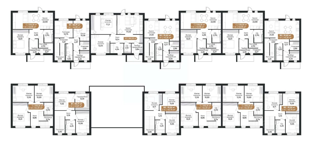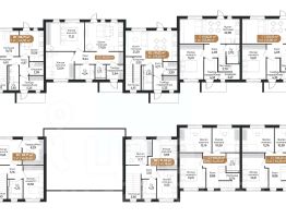 Двухэтажный таунхаус евро-планировки площадью 91.02 кв. м имеет три небольшие жилые комнаты (9.05, 9.71 и 11.69 кв. м), просторную кухню-гостиную (21.59 кв. м), две кладовые и два санузла. Во входной зоне предусмотрено место под гардеробную. Перед входом в дом есть 2 парковочных места, а на заднем дворе собственное патио площадью 75.2-309.2 кв. м, где можно организовать площадку для отдыха или барбекю. Внутренняя отделка Таунхаус сдается с полной чистовой отделкой и готовой кухней. В основе дизайн-концепции лежат идеи скандинавского минимализма. Светлые природные оттенки подойдут для воплощения большинства интерьерных идей. В отделке использован износостойкий ламинат 32 класса с древесной фактурой, белые матовые флизелиновые обои под покраску, плинтуса в цвет стен, белые матовые натяжные потолки с креплением под люстру и встроенными спотами, межкомнатные двери из МДФ с черной фурнитурой. В санузлах крупная керамическая плитка с мраморным узором на стенах и серая на полу; унитаз с инсталляцией, белая раковина со смесителем, белая акриловая ванна с экраном. Предусмотрено место для подключения стиральной машины. Кухонный гарнитур спроектирован по индивидуальным параметрам. Корпус и нижний фасад светлого оттенка дуба, а верхний фасад белого цвета. Во внутреннем оснащении есть лоток для столовых приборов и двухуровневая сушилка для посуды. Кухня укомплектована встроенной техникой: 4-конфорочная электрическая варочная поверхность, электрический духовой шкаф, вытяжка, посудомоечная машина, встроенная композитная мойка и смеситель с аэратором. Внешняя отделка Фасад выполнен из трехслойных железобетонных стеновых панелей по монолитной технологии. Поверхность наружного слоя из архитектурного бетона имитирует текстуру и цвет деревянных реек и досок, а также кирпича. Расположение и инфраструктура Жилой комплекс "СветЛО" располагается в экологически чистом районе. Он окружен лесами, озерами и заповедниками. На закрытой охраняемой территории свой коммерческий кластер с пунктами выдачи, коворкингом, кафе и ресторанами, магазинами, фитнес-центром; променад длиной 1.5 км, пруд с набережной и пляжной зоной, сухой фонтан, уличные тренажеры, детские площадки, парк для выгула собак. Социальная инфраструктура включает детский сад на 140 мест и общественные прогулочные зоны японский сад и сад трав.