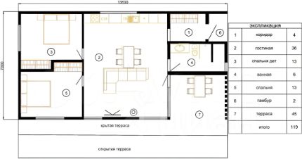 Фасад — разноширокая скандинавская доска с поднятым ворсом.