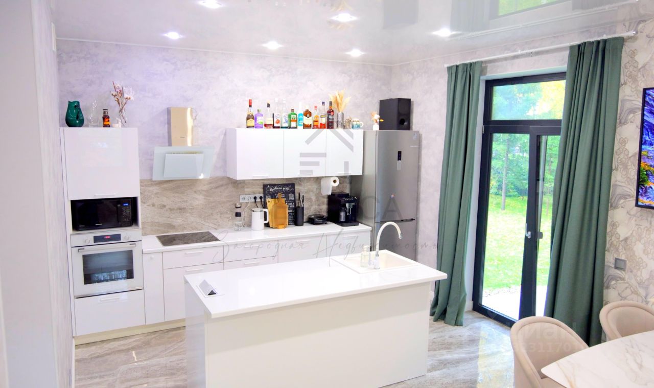 Единое пространство кухни-гостиной с современной техникой и функциональным островом
