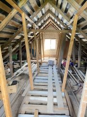 Засыпной тёплый пол, добротная крыша.