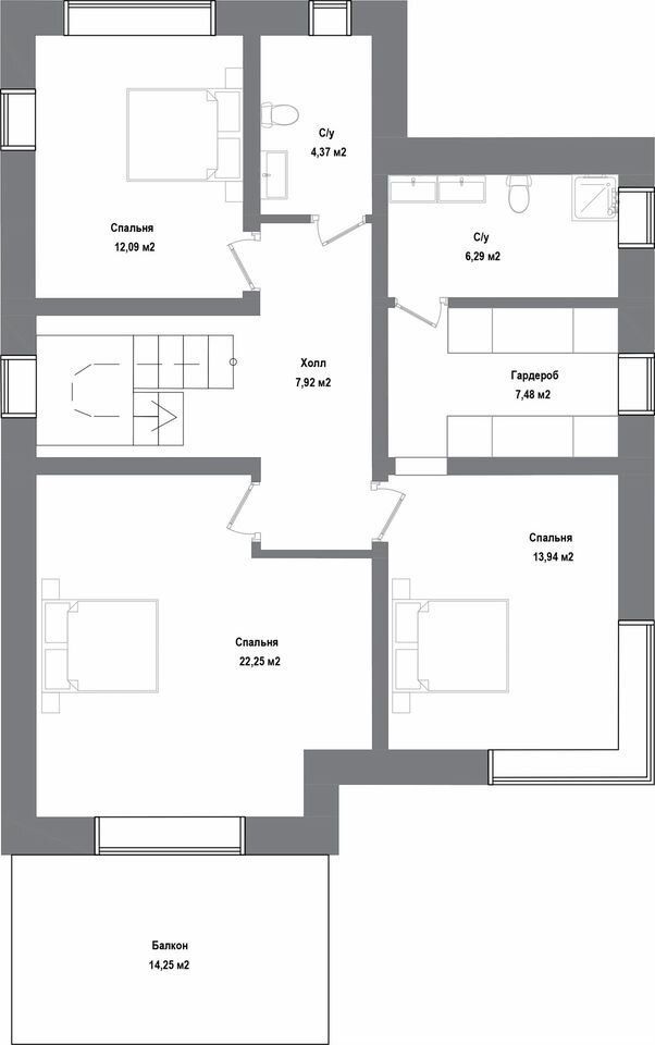- 2 гардеробных комнаты, в т.ч. просторная прихожая с гардеробной;