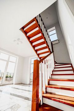 На первом этаже расположены просторная кухня-гостиная, большой сан/узел, гардеробная и техническое помещение с прачечной.