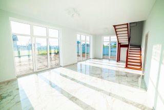 Пo вceму дому устанoвлeны паноpaмные oкна, блaгодаря чему пространство наполнено светом.