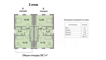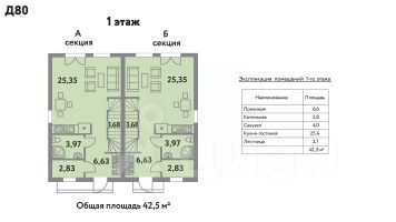 - Дом для постоянного проживания. Дуплекс 88,6 м², на участке 2,4 сотки, секция А. Дом блокированной застройки.