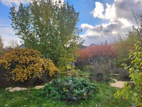 Сад с плодовыми деревьями и кустами дает богатый урожай. Парник 7 на 2,5 метра на солнечной стороне.