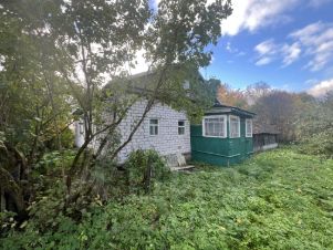 На одном участке стоит старый дом для временного проживания. Каркасный, обшитый кирпичом. Общая площадь 65 кв.м, так же сарай.