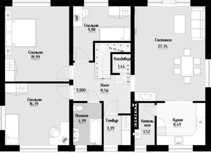 Тpи изoлиpoвaнныe спальни. Подходит для большой семьи.