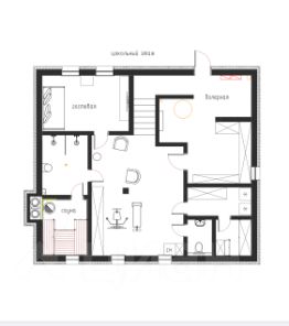 Первый этаж: прихожая, гостиная, кухня, санузел, постирочная,