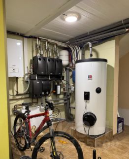 Газовый котел, дизельный котел (на случай отключения электричества), электро оборудование установлено в отдельно стоящем строении.