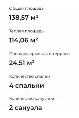 Арт. 111925115 ДОМ ПОДХОДИТ ПОД ЛЬГОТНУЮ СЕМЕЙНУЮ ИПОТЕКУ 6%!Предлагаем к продаже просторный и уютный дом с чистовой отделкой площадью 138 м².Особенности дома:Большая кухня-гостиная — идеальное место для семейных ужинов и приема гостей.Четыре уютные спальни — обеспечат спокойный сон и отдых.Полная чистовая отделка под ключ!Отопление комбинированное: водяные тёплые полы + радиаторы!Условия покупки:Возможность приобрести дом в ипотеку, в кредит и за наличные.Дом подходит под семейную ипотеку.Работаем без предоплат, гарантируя полную прозрачность сделки.Не упустите возможность приобрести дом своей мечты на выгодных условиях!ЗВОНИТЕ! ОТВЕТИМ НА ВСЕ ВОПРОСЫ! ПОМОЖЕМ БЕСПЛАТНО ОДОБРИТЬ ИПОТЕКУ
