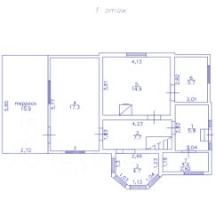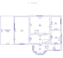 На первом этаже располагается небольшая гостиная с эркером, 2 спальни, несколько хозяйственных комнат.