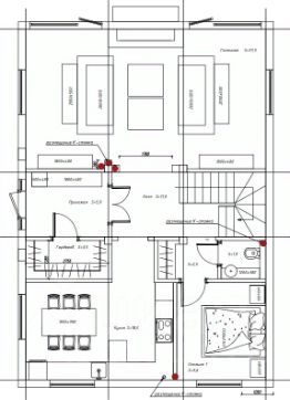 Дом выполнен из керамического поризованного кирпича на монолитном фундаменте, облицовка фасада штукатурка по первому этажу и имитатор клееного бруса по второму. Кровля - гибкая черепица, окна из алюминиевого профиля. Терраса и балконы покрыты лиственницей. Дымоход облицован натуральным природным камнем.