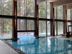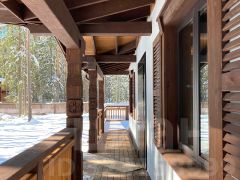 Шале в окружении соснового леса расположен в поселке премиум класса Лесная деревня на курорте Охта Парк, что в 10 км от северной границы Санкт-Петербурга.