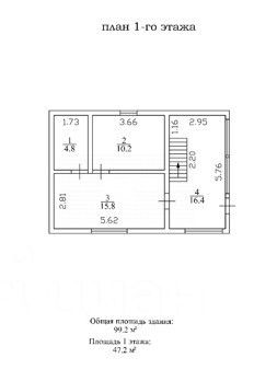 1 - этаж : кухня 16,4 м.кв., холл- гостинная 15,8 м.кв. , С/У совмещенный 4,8 м.кв. , спальня 10,2 м.кв.