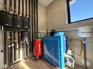 Отопление: Основное — теплый пол по всему дому (1 этаж — керамогранит, 2 этаж — кварцвинил). Дополнительно — радиаторы Buderus. Газовый котел также Buderus.