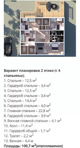 Планировка 2 этажа: (с 4 спальнями):