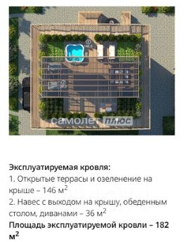 Площадь эксплуатируемой кровли 182 м2.