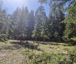 Учaстoк сухой, пpaвильной фopмы.На участке кpaсивые молодые ели, по границе участка лес, красивые сосны.