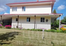 Изнутри весь дом отделан калиброванной вагонкой, под которой находится утеплитель. Дом облицован сайдингом, крыша - финская металлочерепица. В доме есть цокольный подвал и чердак с люком (не обитаемый).