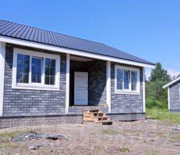 Чистовая отделка. Пол - кварцвиниловая SPC плитка. Стены имитация бруса (профиль Штиль). Натяжные потолки. Внешняя отделка стен выполнена фасадной плиткой Hauberk. Утепление каменной ватой 150 мм. Фундамент железобетонные сваи. Крыша металлочерепица.