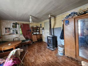 Дом каркасно-щитовой, обшит сайдингом. Летний формат, подойдёт для сезонного проживания или как времянка на период строительства нового дома. Планировка: две веранды, оборудованные под кухни, и две комнаты, одна из которых с печью. Состояние простое, требуется ремонт, но всё необходимое есть — мебель и техника остаются новому владельцу.