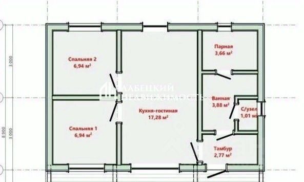 Дом общей площадью 46.9 м², расположен на участке 10 соток.