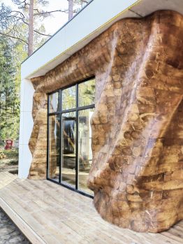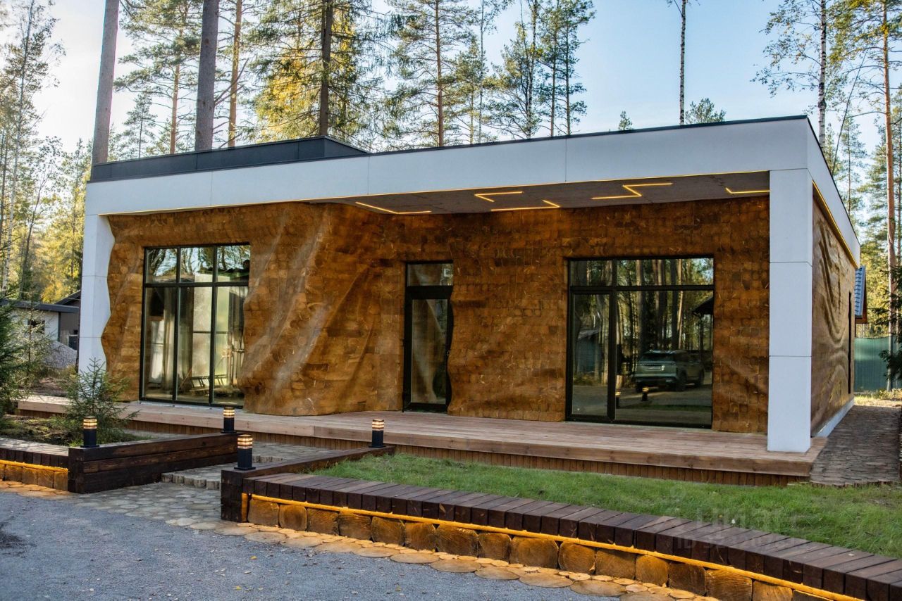 Представляем уникальный дом, который сложно назвать просто домом. Это арт-объект, созданный для тех, кто ценит современную архитектуру и индивидуальность. Его главная особенность — эксклюзивный фасад, отделанный по авторской технологии Мягкое дерево . Плавные, обтекаемые формы в духе параметрической архитектуры создают впечатление, что дом является органичным продолжением природного ландшафта.