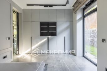 - Управление через систему умный дом: освещение (настройка сценариев освещения), входная дверь (возможно открытие и закрытие двери дистанционно), форточки с электронным приводом, шторы, телевизор, акустика, бытовая техника, теплые полы, подсветка дома и территории участка, и др.