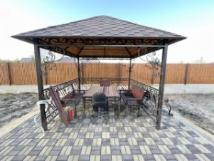 Участок: участок 10 соток, ровный, большая часть покрыта тротуарной плиткой для комфорта перемещения и заезда транспорта на участок. Есть и зеленые участки под посадку деревьев/цветов/овощей. На участке красивая беседка с мангалом, где будет приятно проводить время предстоящим летом. Два входа, оба с воротами, установлен септик.