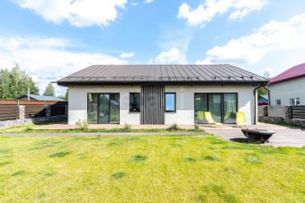 Дом выполнен по индивидуальному дизайн-проекту. По периметру установлен забор из газобетона. Для комфортного заезда на территорию участка установлены электрические откатные ворота на пульте управления. Общая площадь дома 109 кв.м включает в себя просторную кухню-гостиную с панорамными окнами, мастер спальня с собственной гардеробной и ванной комнатой, детская, кабинет, санузел с предусмотренной зоной для сауны и постирочной зоной, прихожая и гостевой туалет. Высота потолков 3 метра.