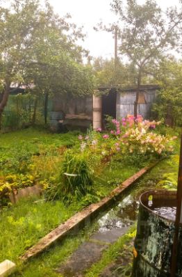 Участок огорожен, заезд для авто и калитка. Можно сразу заехать в гараж. Из посадок: яблони, сливы, смородина, крыжовник, малина, клубника, цветы. Газон.