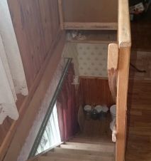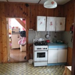 Из прихожей попадаем в светлую тёплую веранду- столовую (16 кв.м.), из которой можно по лестнице подняться на второй этаж. Из столовой вход в кухню (8 кв.м.). Из кухни выходят две раздельные комнаты: маленькая спальня (5 кв.м) и комната (14 кв.м.). В доме эффективная добротная печь.