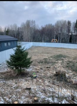 Участок сухой, ровный, солнечный, покрыт травой, К участку подведена дорога, обустроен 8 метровый въезд, установлены 4 метровые откатные ворота и забор по периметру участка.