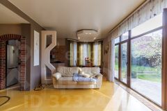 Первый этаж включает в себя кухню, гостиную, котельную с санузолом, прихожую. На втором этаже расположены три спальни, гардеробная и просторная ваннаяс окном. Дом очень теплый, в гостиной на первом этаже тёплый пол дизайнерской работы.