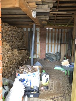 - новый хоз.блок, в котором разместились дровенник и жилье для собаки;