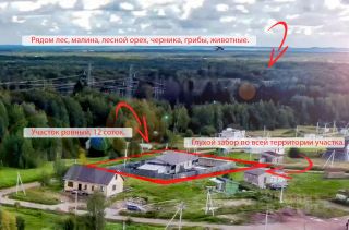 Участок правильной формы 12 соток, электричество 15 киловатт (есть бонус, расскажу при встрече).
