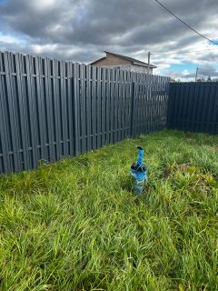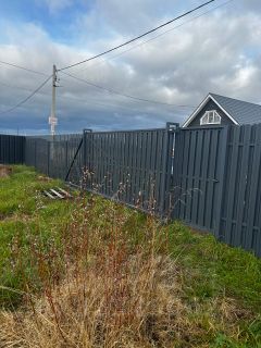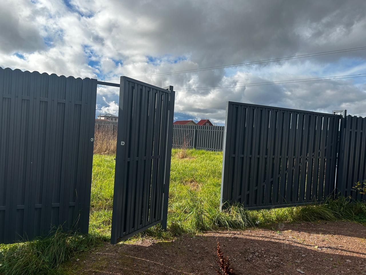 Подключено электричество, сделан въезд на участок, скважина,  металлическая бытовка 6*2,4, установлен забор с откатными воротами.