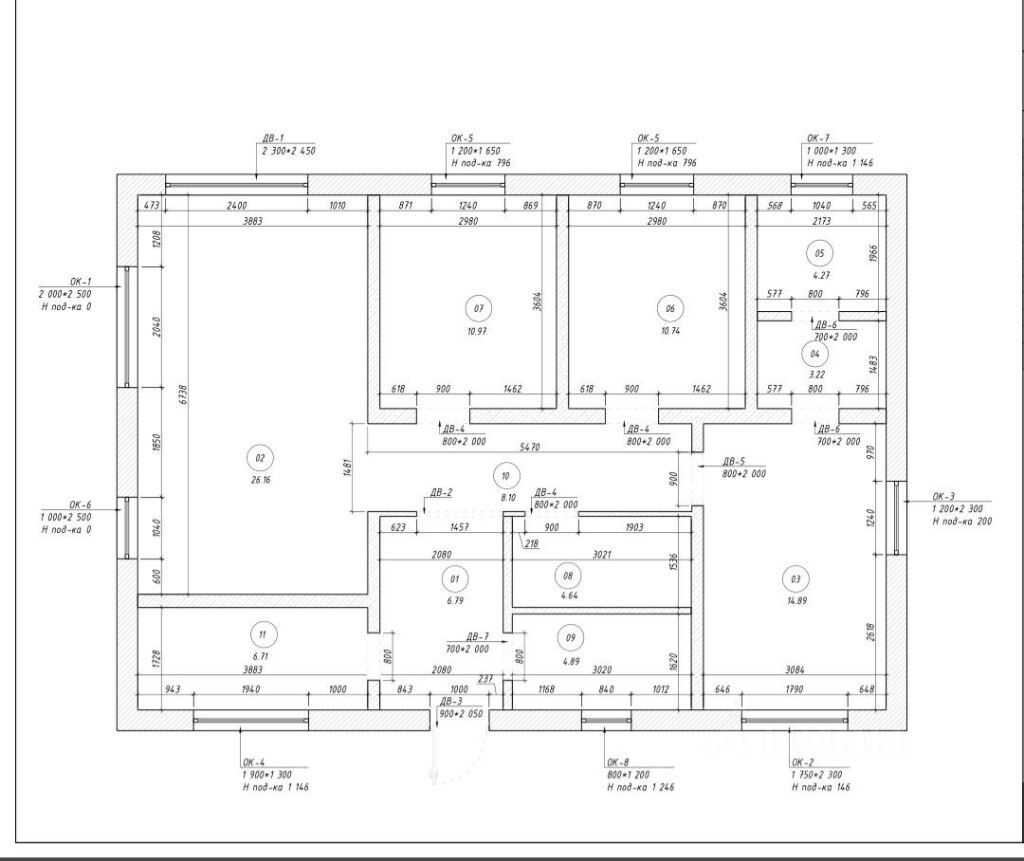 Кухня-гостиная 26 м² (потолок 4,2 м.), мастер-спальня 15 м², со своей гардеробной 3,2 м² и санузлом 4,3 м², две спальни по 11 м², кабинет 6,7 м², общий санузел 4,6 м², просторный холл 6,8 м², широкий коридор 8,1 м², котельная 4,9 м².