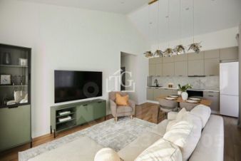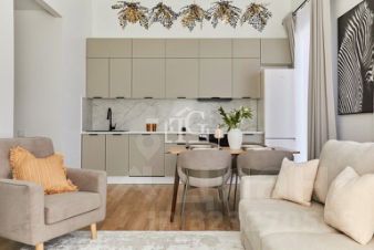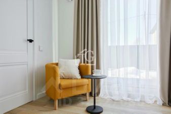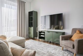 Новый, никто не проживал: дизайнерский ремонт, мебель, техника всё на гарантии. Полностью укомплектован бытовой техникой: духовой шкаф, варочная панель, вытяжка, посудомоечная машина на 60 см, холодильник, стирально-сушильная машина, кондиционер, смарт-телевизор 65 дюймов.