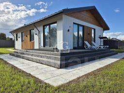 Одноэтажный жилой дом 135 м.кв. на участке 8,62 сот. в современном престижном коттеджном поселке "Крокусы". До КАДа 13 км. До песчаного пляжа Коркинского озера 14 минут пешком.